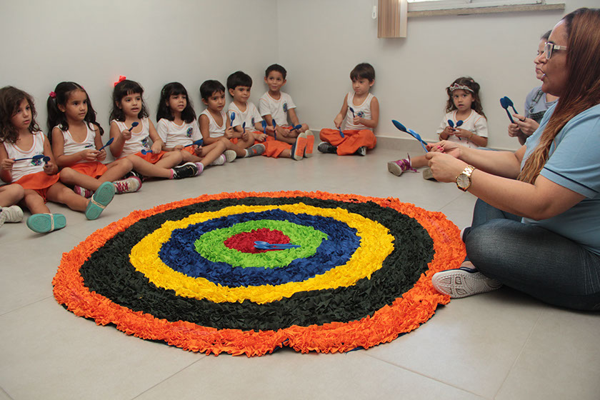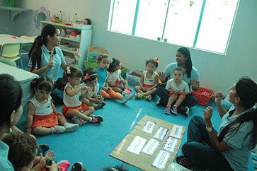Multipurpose class: a space where children have video class, reading and storytelling, and music class.